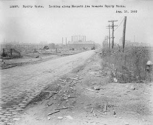 The 1907 Sanborn map shows a consistent, although slightly more extensive, plant layout. The plant appears to be developed to its maximum extent on a 1921 BUG facility plan, although largely maintaining the layout shown on the earlier 1903 and 1905 plans. A 1932 BUG plan indicates that the relief holder was partially decommissioned, and the 1933 Sanborn map shows that the gas manufacturing equipment has been removed with the former purifying house and generator house buildings present but vacant. The 1951 Sanborn shows the lot being owned by BUG and is vacant with the exception of two small buildings near the southern edge of the Site.